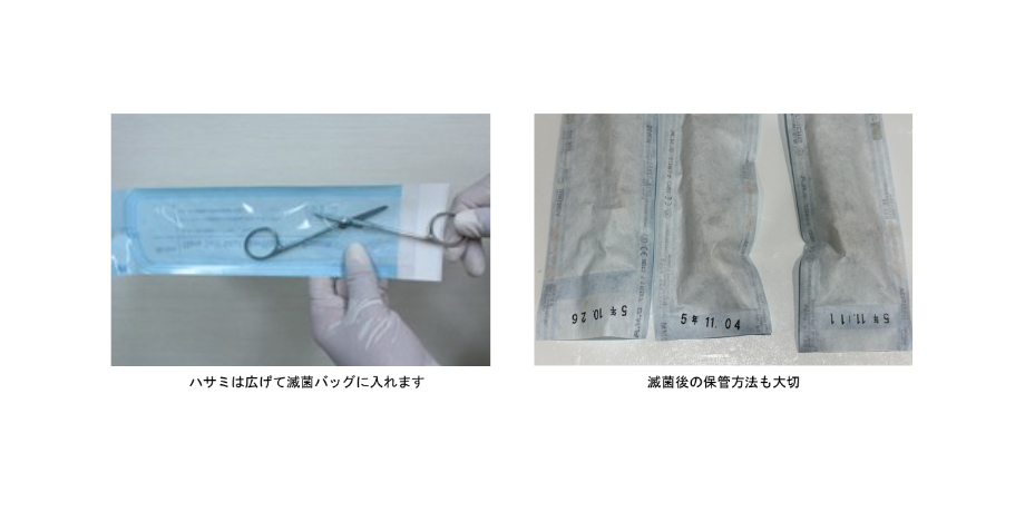 滅菌バッグの使用については滅菌バッグを使用する器材の選択も考慮することが必要です。滅菌バッグの使用の選択を適切にすることにより、経費や労力にも影響してきます。そして、正しい封入方法や、滅菌後の保管方法までを院内で共有し、誰が処理を行なっても同レベルの処理になるようにします。
