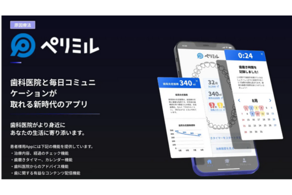 ・行動変容支援アプリ「ペリミル」との連携により、再発予防・継続管理型の歯周治療が可能に。