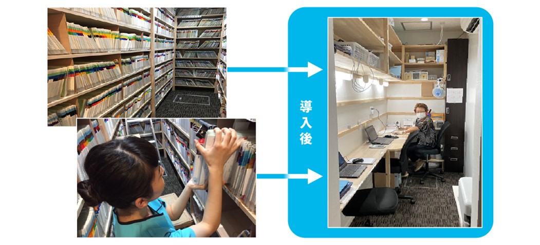 その結果、カルテ庫を埋め尽くしていた診療ノートは姿を消し、現在は事務室として活用。