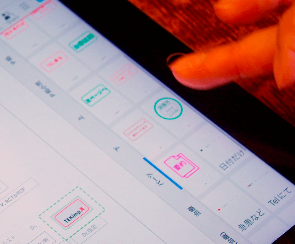 特にスタンプ機能は、他院から譲り受けたスタンプを参考に、院内の診療スタイルに合わせてツールボックスをカスタマイズ。数分かかっていた手書き作業を数秒へ短縮する効果があり、受付業務の抜け漏れや、スタッフ間の情報共有ミスを大きく減らしました。