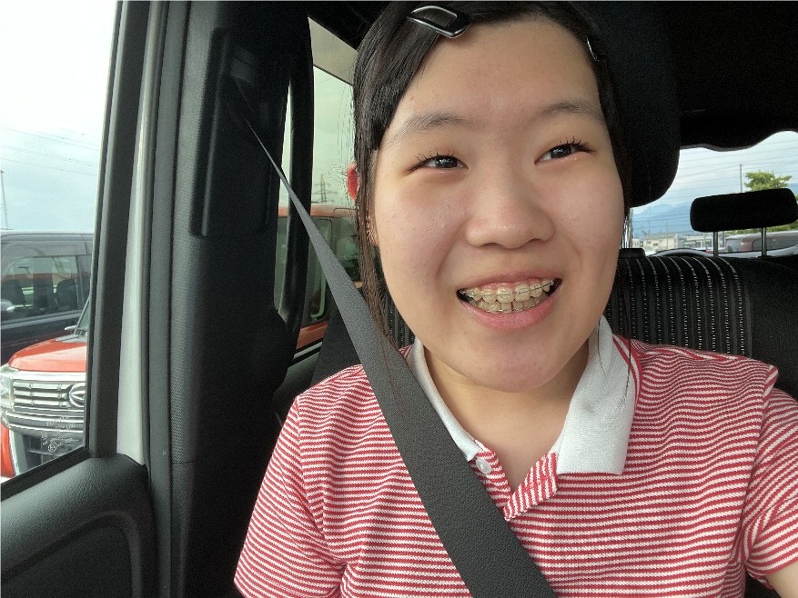 矯正をスタートする前に抜歯を経験し、矯正スタートからは歯の動く痛みに戸惑いました。今はカラーゴムを付けて気分を上げたり、矯正を楽しんでいます。そして歯並びが綺麗になっていくのが楽しみです。