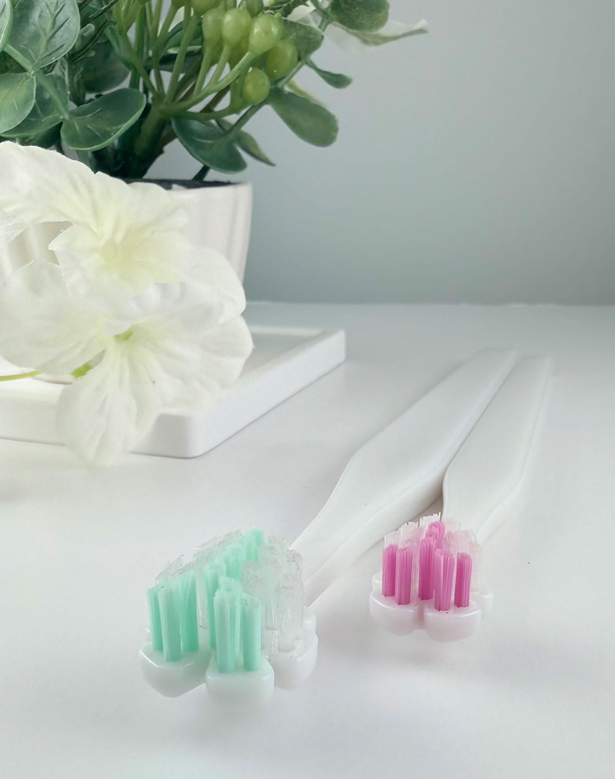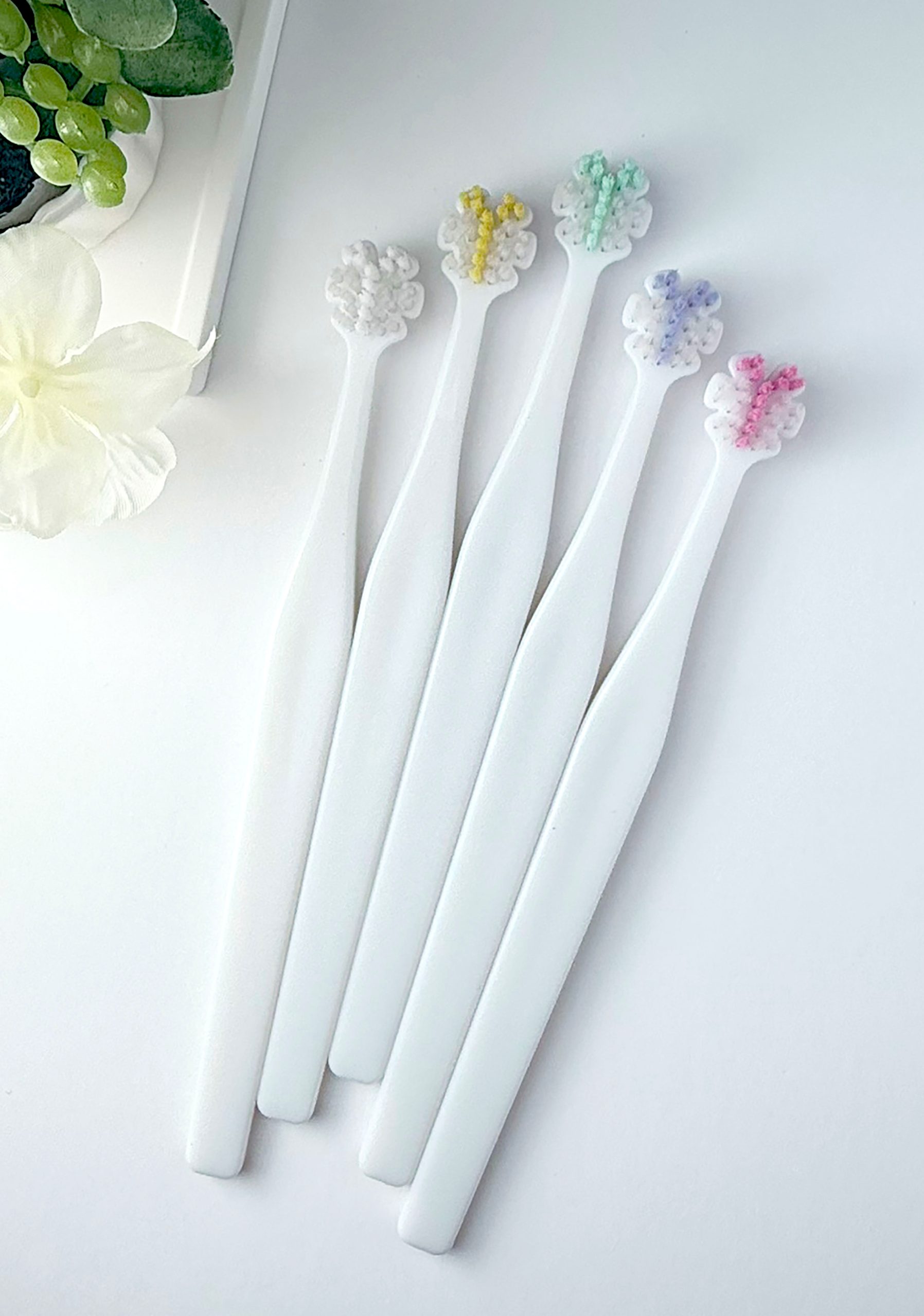 製造は歯ブラシの産地として知られる大阪・八尾の工場で行われ、毛先の角度や密度、植毛の深さに至るまでミクロン単位で管理されています。複雑なスリット形状やY字構造も、職人の検品によって安定した品質で仕上げられ、毎日の使用に耐える耐久性を実現しています。