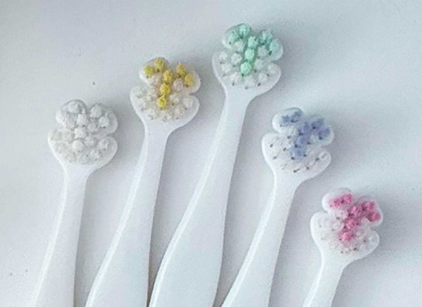 毛の硬さや長さ、配置は、何度も試作を重ねて微調整されており、強く磨かなくても軽く動かすだけで歯間までしっかり届くのが特徴です。