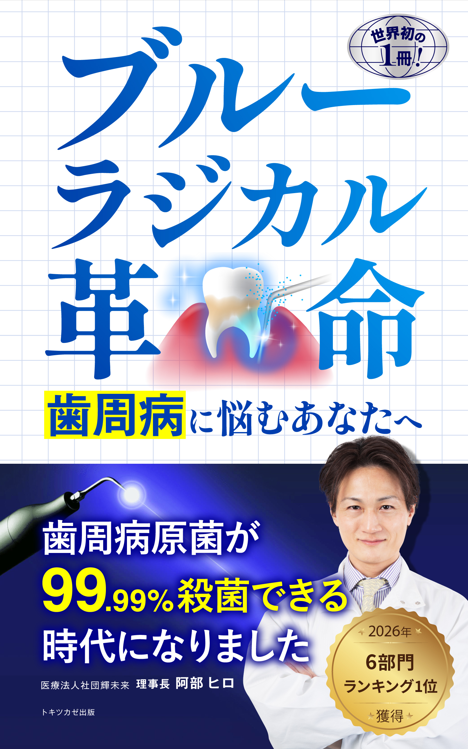 トキツカゼ出版株式会社(本社:大阪府大阪市、代表取締役:中島 琴美)は、医療法人社団 輝未来 あべひろ総合歯科/東松戸総合歯科クリニックの理事長の阿部ヒロ(あべひろ総合歯科:埼玉県三郷市/東松戸総合歯科:千葉県松戸市)による最新著書『ブルーラジカル革命: 歯周病に悩むあなたへ 歯周病原菌が99.99%殺菌できる時代になりました』を2026年1月3日に出版しました。