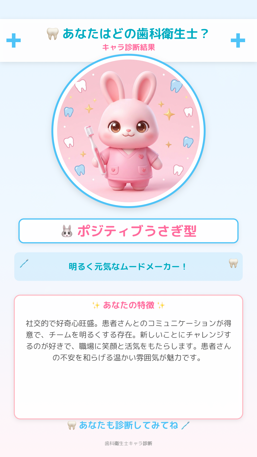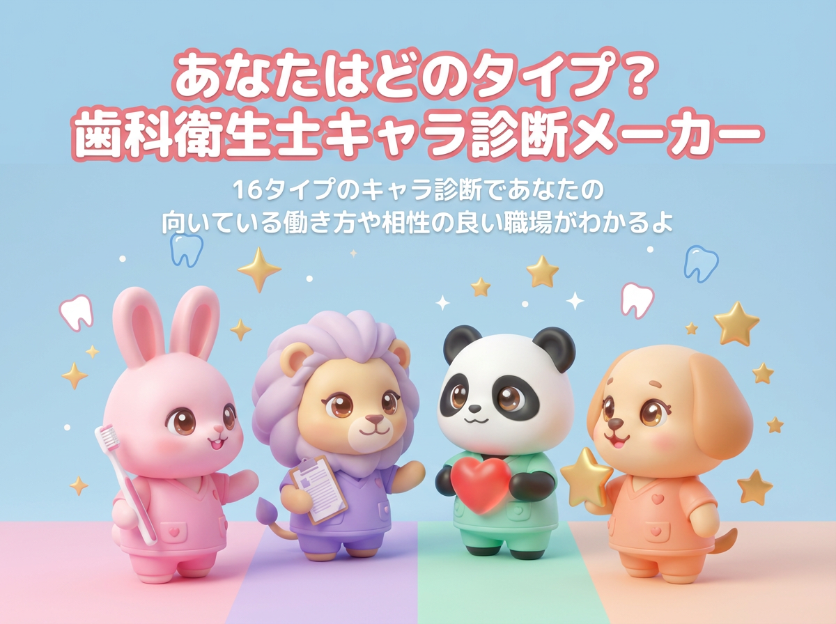 このたび、現役歯科衛生士・歯科衛生士学生・離職中の歯科衛生士を対象に、無料ツール「歯科衛生士キャラ診断メーカー」を公開しました。