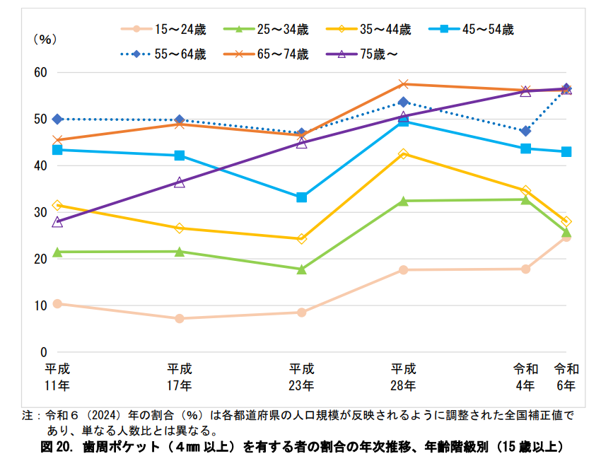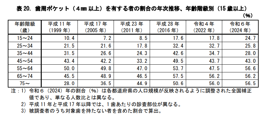 自覚症状がないまま歯周病リスクが進行する「サイレント・ディジーズ(静かなる病気)」が深刻化しやすい層でもあり、実際に15~24歳の歯周ポケット保有率は2011年からの約13年で約3倍に急増しています。