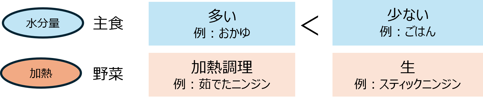 ➀噛み応えのある食材を選ぶ:食物繊維を多く含むもの、弾力性のあるもの