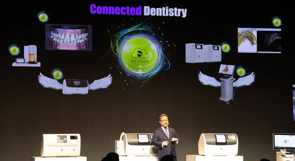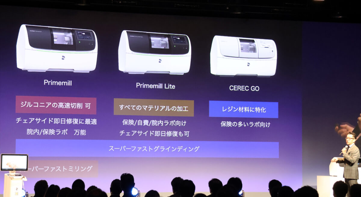 イベントの冒頭では、フアン・ロディギエロ氏よりCEREC Primemill Lite、CEREC Go、Axano Pureの3つの新製品がご紹介され、CEREC Primemill Lite、CEREC Goはクラウドプラットフォーム「DS Core」に直接リンクし、ワイヤレスで繋がる「Connected Dentistry」対応機種に進化した点が強調されました。