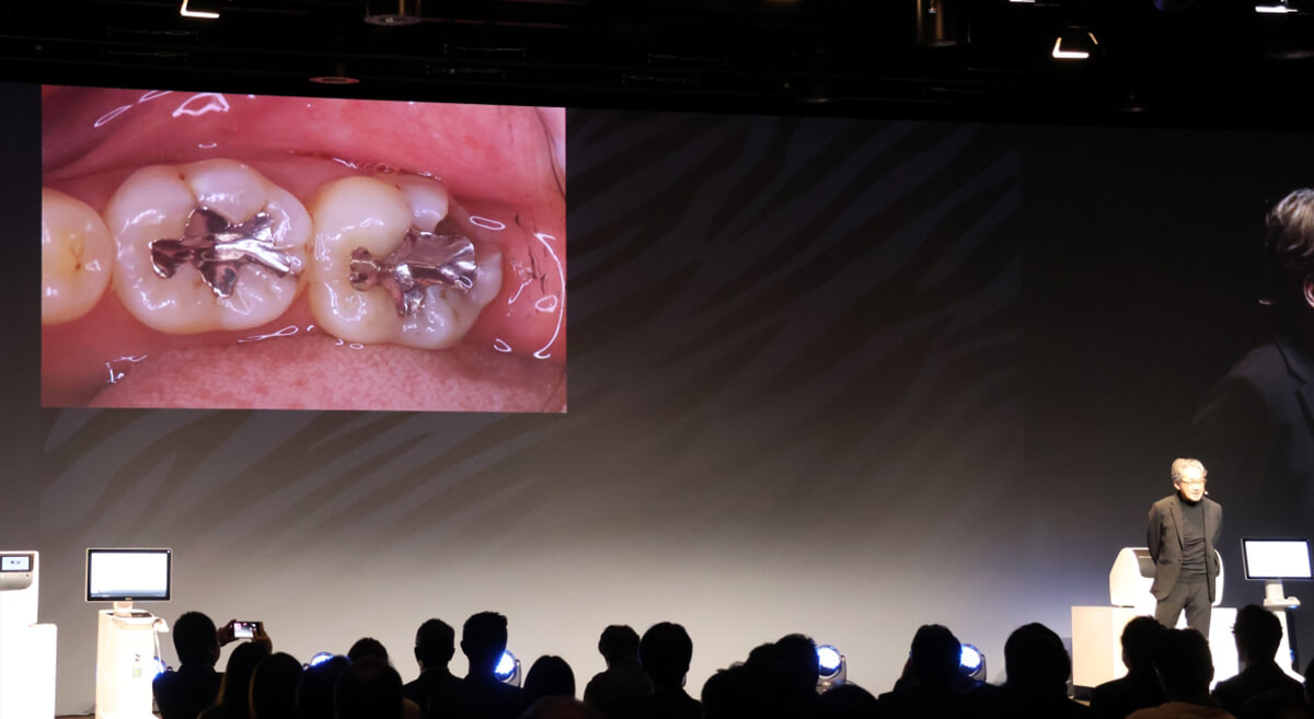 30年にわたりCEREC臨床に携わる中村先生は、「長期保存」をテーマに講演しました。20年、30年経過したCEREC修復の症例を提示し、適切な接着操作と象牙質封鎖を行えば、デジタルで作製した修復物も長期的に機能することを解説されました。中村先生は「CERECは歯を守るための道具であり、接着はその手段である」と述べ、歯質の保存を最優先するSingle Visit Treatmentの意義を訴えました。