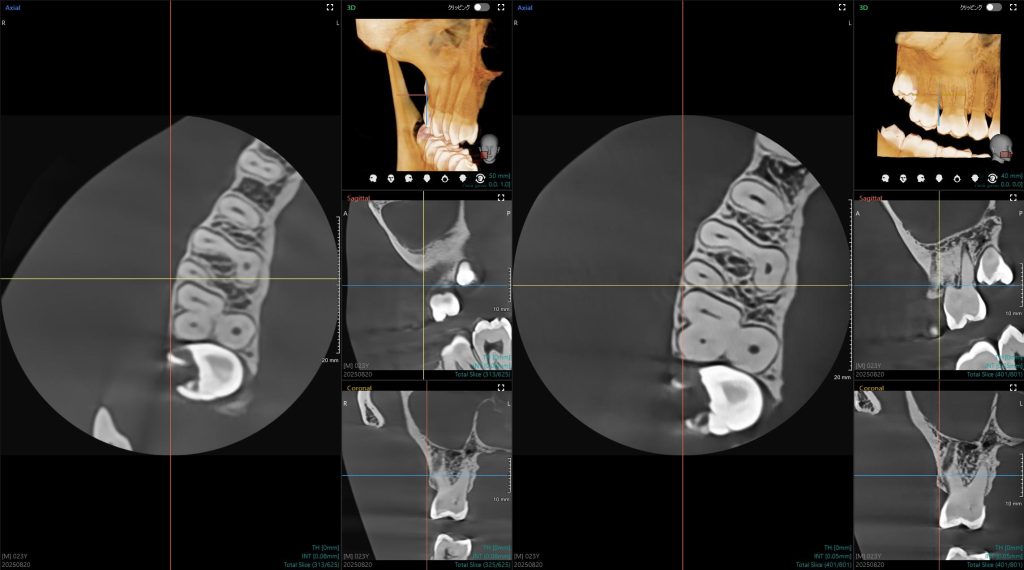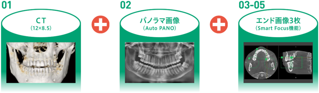 「たった一回の撮影で、通常のCT画像に加え、パノラマ画像、さらには他社のエンドモードに匹敵する70ミクロンのエンド画像を最大3つまで、合計5種類の画像を同時に取得できます。先生は患者様を何度も撮影室に呼ぶ必要がなくなり、チェアタイムを大幅に短縮できるのです」