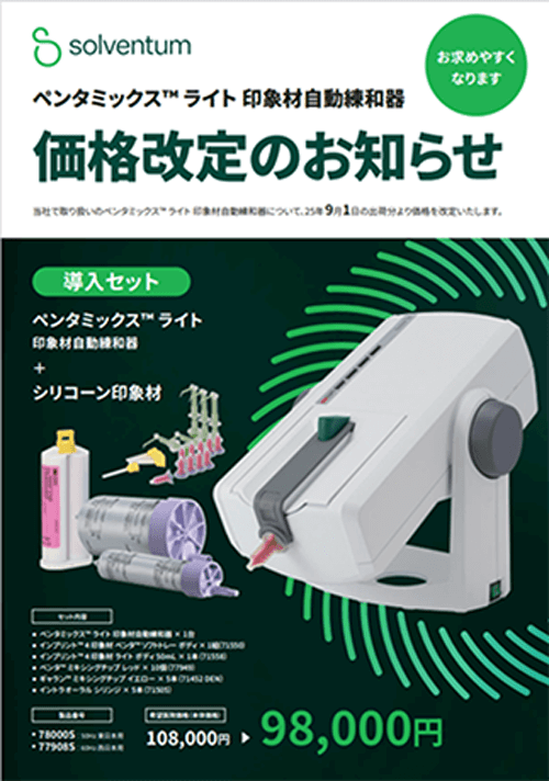 - インプリント4印象材の自動練和器【ペンタミックスライト】を特別な条件でご提案させて頂けることになりました。