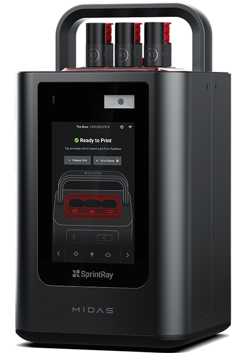 - スプリントレイ マイダス 3Dプリンタは、小型で操作が容易。インハウスで素早く補綴物を造形でき後処理も容易なため臨床現場の効率化に貢献する3Dプリンタです。