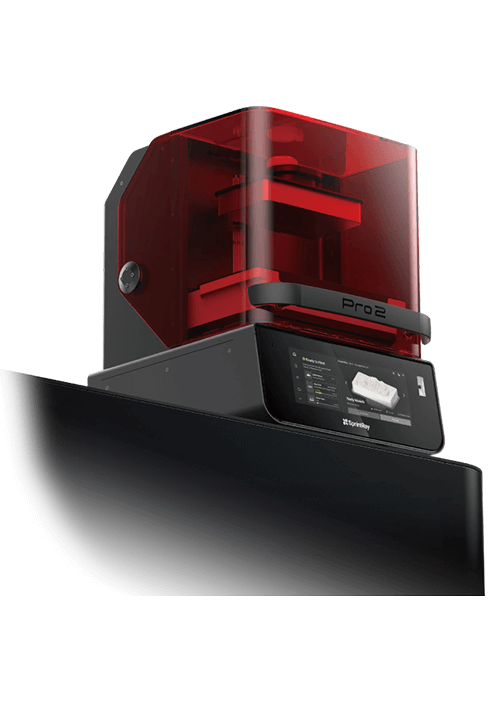 - スプリントレイ プロ2 3Dプリンタは、広い造形エリアで複数の補綴物を同時に高速造形可能です。