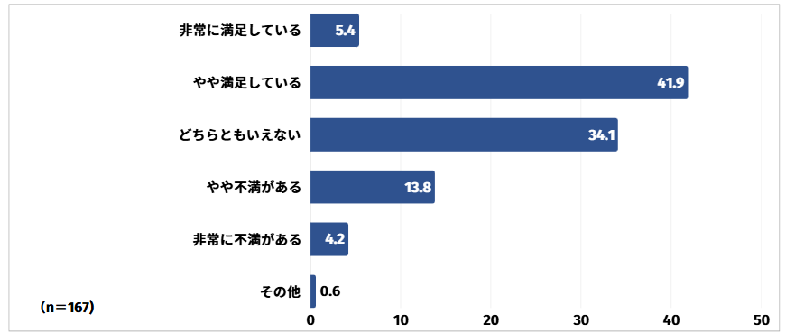 やや満足していると回答した方は41.9%と最も多く、次いでどちらともいえないと回答した方が34.1%、やや不満があると回答した方が13.8%という結果となりました。