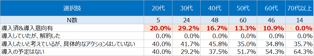 年代別にみると、ここでも若手層(20代〜40代)が先行しており、デジタル化ツールを「すでに導入している」割合、「選定を始めている」割合ともにベテラン層(50代〜70代以上)を上回っています。
