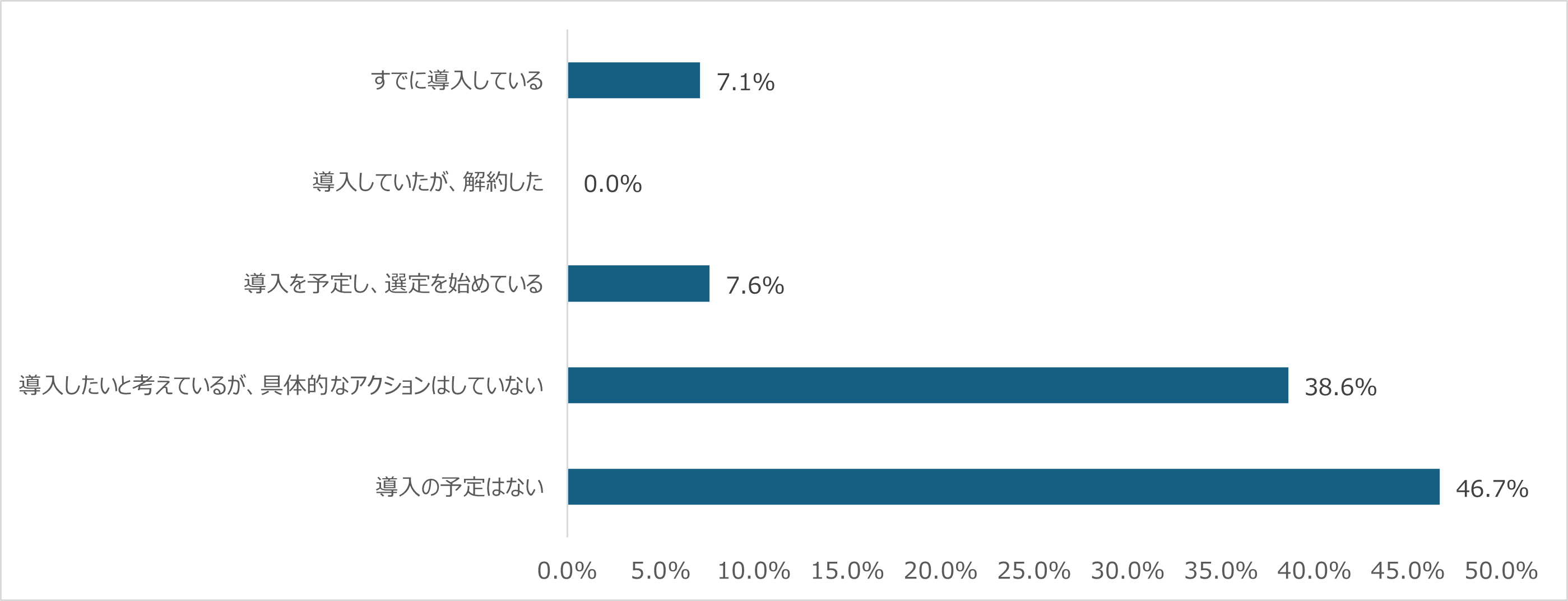 サブカルテのデジタル化ツールを「すでに導入している」と回答したのは全体のわずか7.1%。「導入を予定し、選定を始めている(7.6%)」を合わせても、実際に動き出しているのは全体の約15%に留まっています。