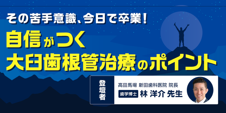 根管治療のストレスから解放されたい歯科医師のために、本webセミナーでは高田馬場 新田歯科医院 院長の歯学博士 林 洋介先生に、大臼歯根管治療のポイントについてお話いただきました。