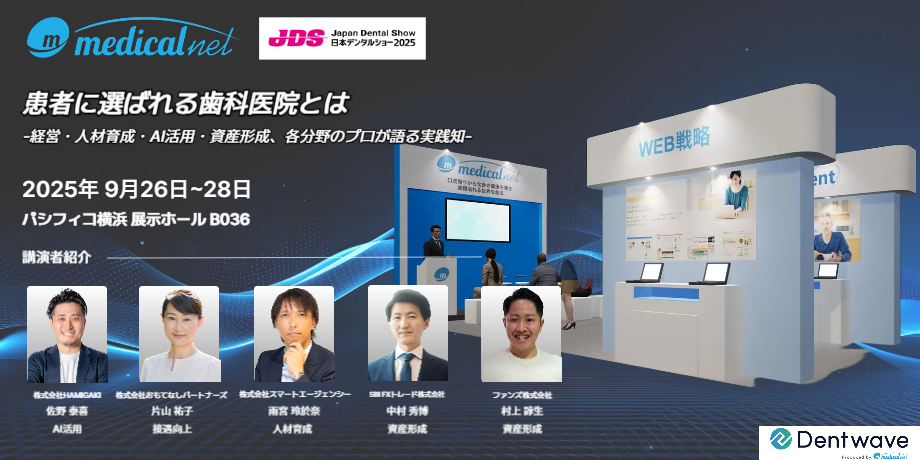 【日本デンタルショー×メディカルネット】患者に選ばれる歯科医院とは-経営・人材育成・AI活用・資産形成、各分野のプロが語る実践知-